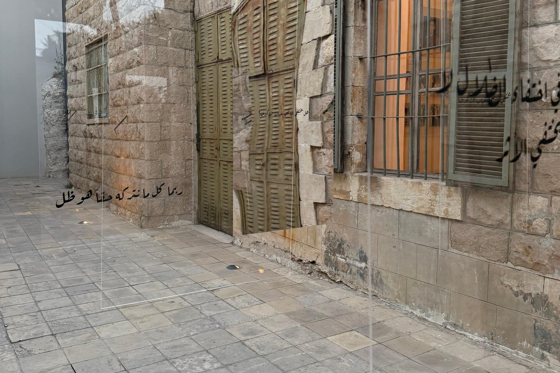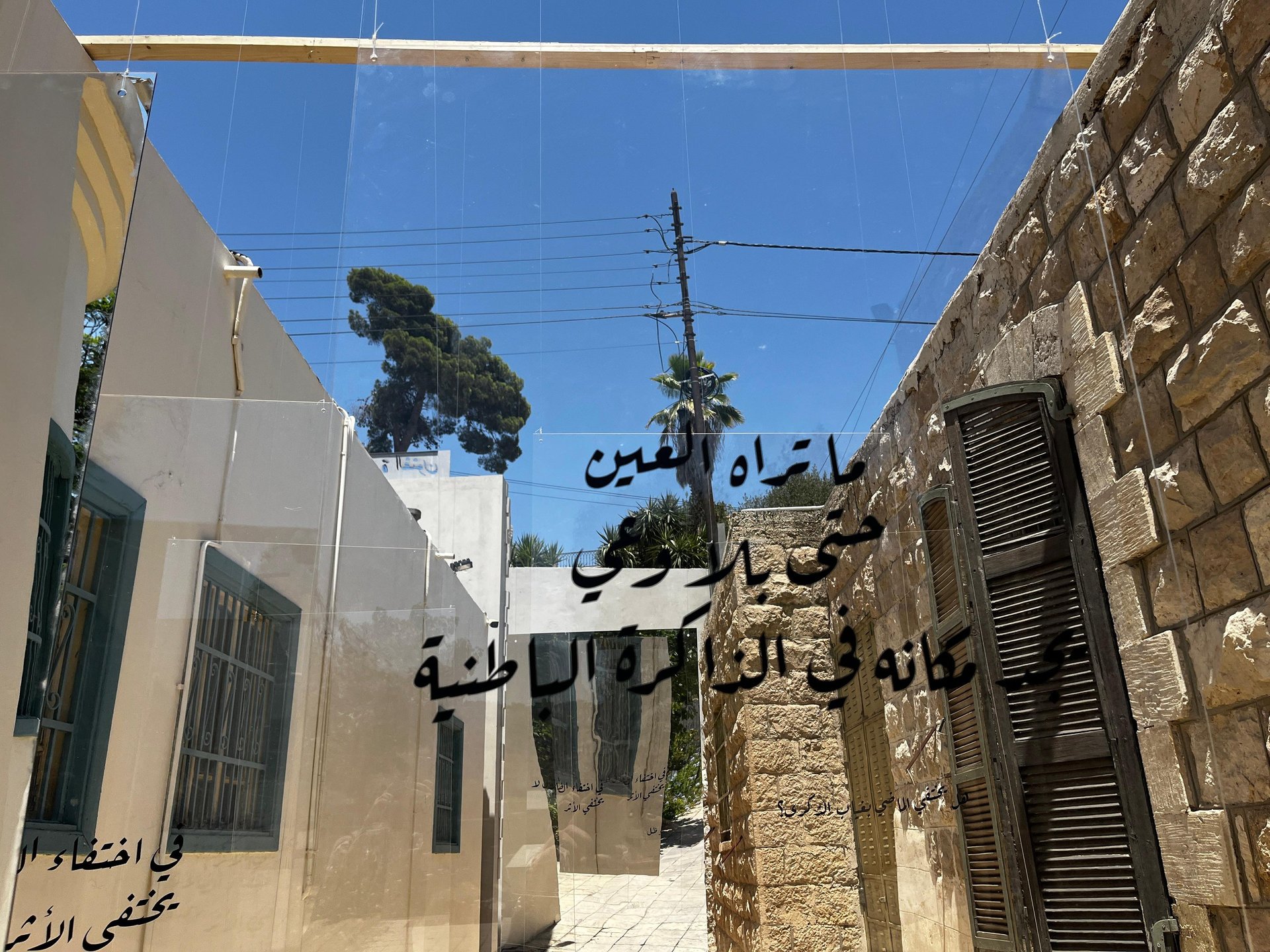 Through translucent surfaces, layered texts, and a subtle play with light and shadow, the work questions how memory and time are inscribed within a space.